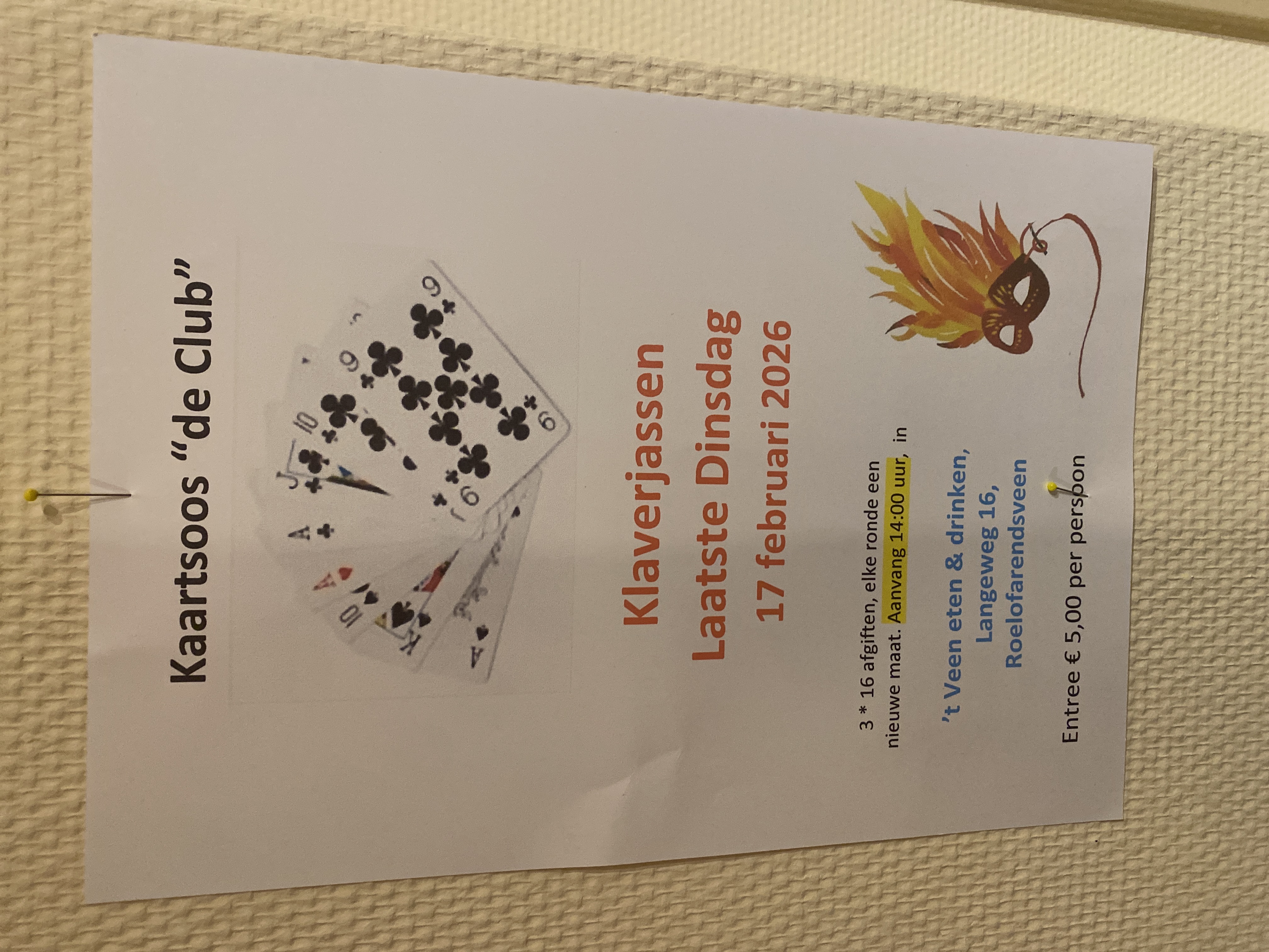 Bij 't Veen kun je 'laatste dinsdag' klaverjassen, georganiseerd door klaartclub de Soos.