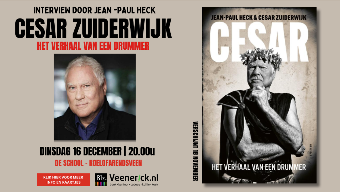 Op dinsdagavond 16 december organiseren we samen met Uitgeverij Unieboek Spectrum een mooie avond met Cesar Zuiderwijk. Het persoonlijke verhaal van de bekendste drummer van Nederland.