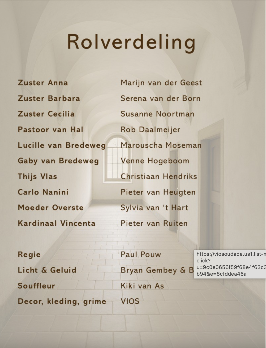 Na de zomer is een grotere groep van onze volwassen leden hard aan de slag gegaan om te gaan blokken op de lollige teksten van Maurits Keyzer. Met deze avondvullende komedie die draait om verwarring, misleiding en samenkomst hopen wij het publiek, maar zeker ook onszelf goed te vermaken in de donkere dagen van december.