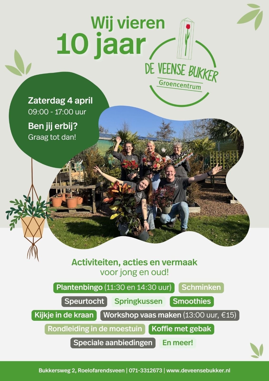Zaterdag 4 april viert De Veense Bukker het 10-jarig bestaan en organiseren zij een open dag met verschillende activiteiten, acties en vermaak voor jong en oud met als hoogte punt een gezellige plantenbingo.